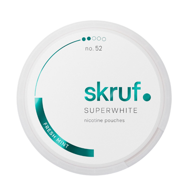 Skruf Superwhite No.52 Fresh Mint Snus ist die neue verbesserte Version von SKRUF Super White #2 Snus. Skruf Superwhite No.52 Fresh Mint Snus hat e...